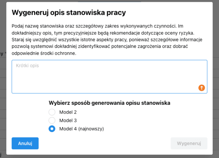 Pierwszą nowością jest Model nr 4, odpowiedzialny za tworzenie opisów stanowisk zawodowych.